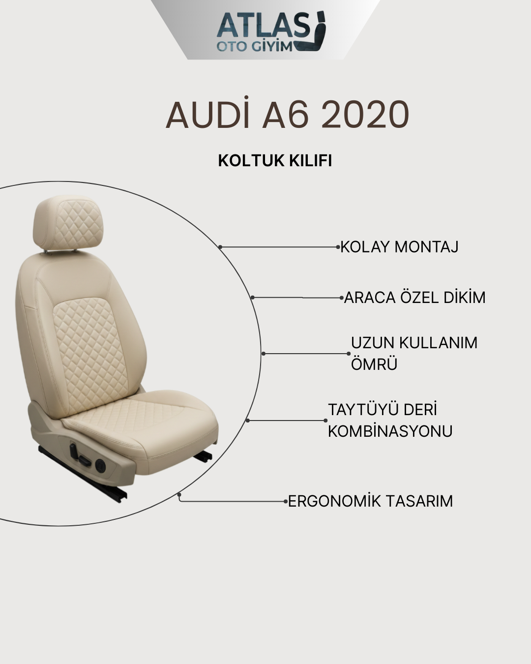 -Audi A6 2020 ve üzeri modeller için özel olarak tasarlanan yapısı, koltuklara birebir uyum sağlar ve sürüş esnasında konforlu bir kullanım sunar.